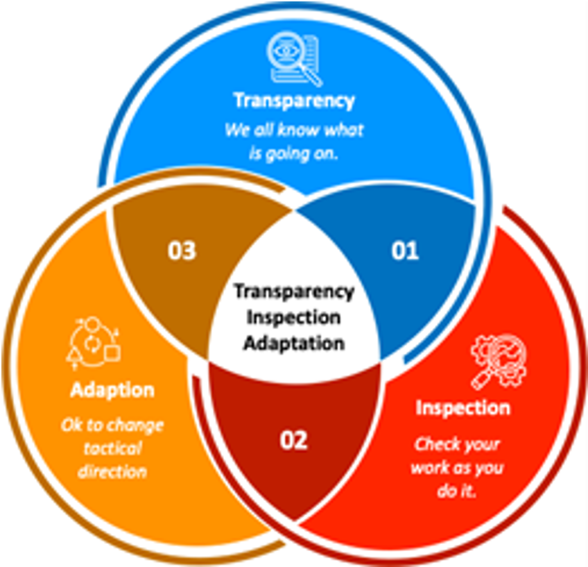 Scrum is based on three primary pillars: transparency, inspection, and adaptation. These principles mean that the work done in the team should
